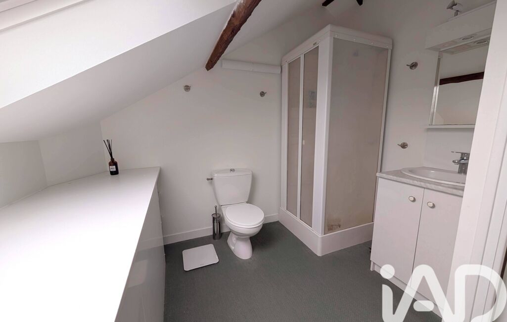 À l’étage, l’espace nuit se compose d’une chambre, d’un bureau pouvant faire office de seconde chambre ainsi qu’une deuxième salle d’eau avec douche et WC.