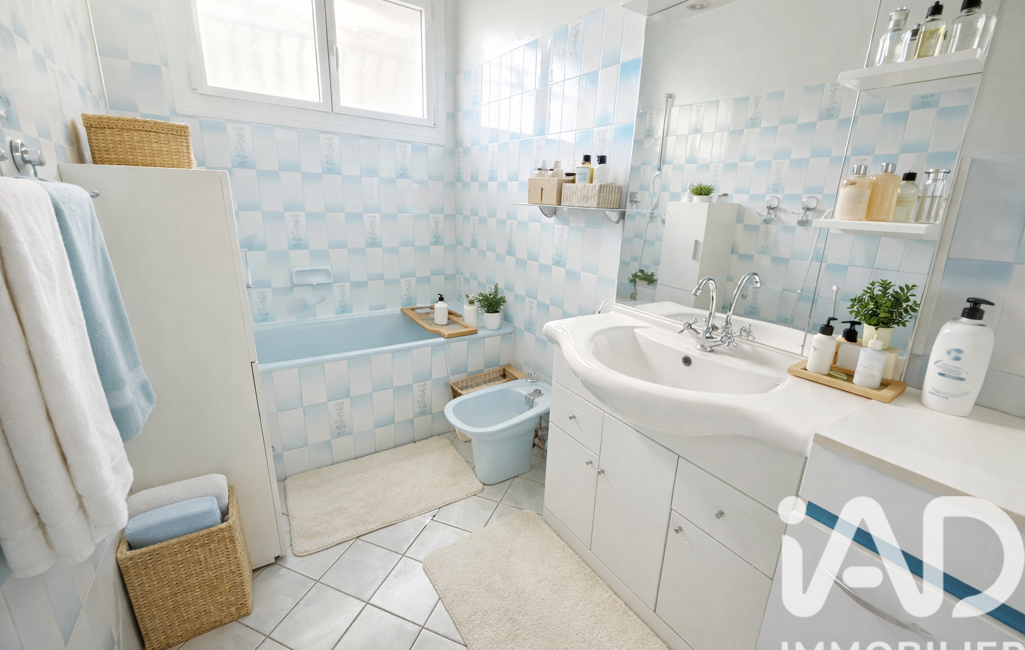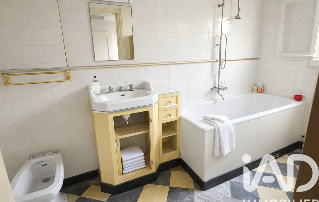 Une salle de bains (meuble une vasque, bidet, baignoire)