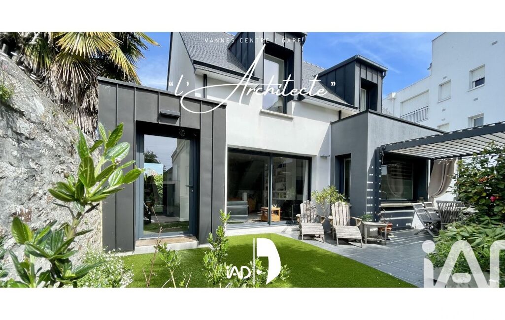À quelques minutes à pied de l’hyper-centre de Vannes et de la gare TGV (Paris en moins de 3h), cette maison d’architecte, conçue et agrandie par ses propriétaires, propose un cadre de vie urbain, fluide et serein.