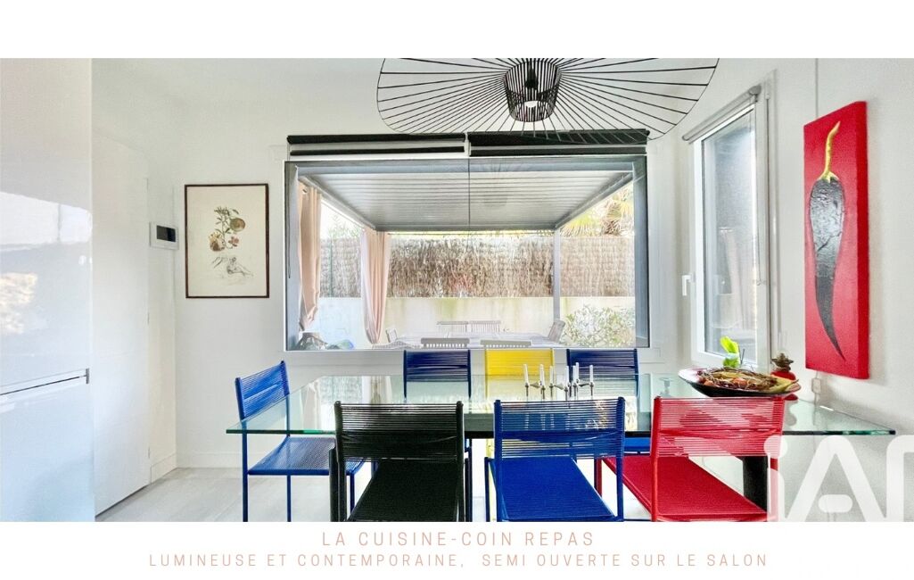 Au rez-de-chaussée, j’apprécie particulièrement la pièce de vie : orientée sur le patio et lumineuse, elle s’ouvre naturellement sur une cuisine contemporaine, parfaitement équipée.