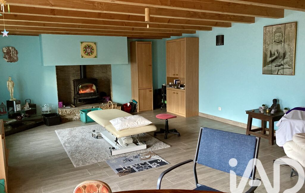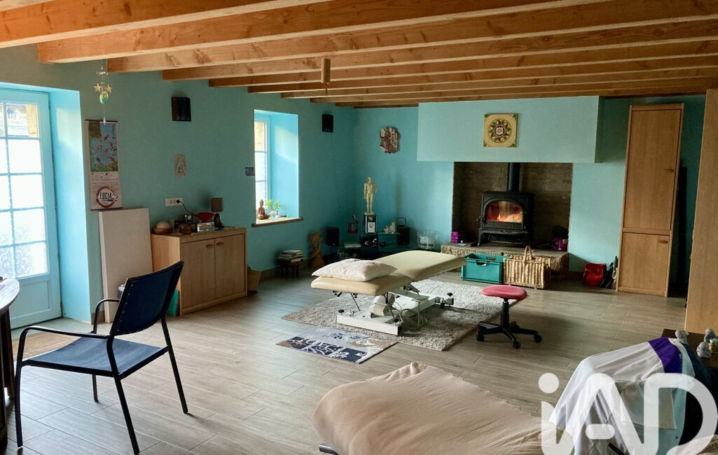 Rez-de-chaussée : très belle pièce à vivre avec deux poêles (bois et pellets), s’ouvrant sur une véranda, et une terrasse , cuisine aménagée / équipée , salle d’eau avec WC.