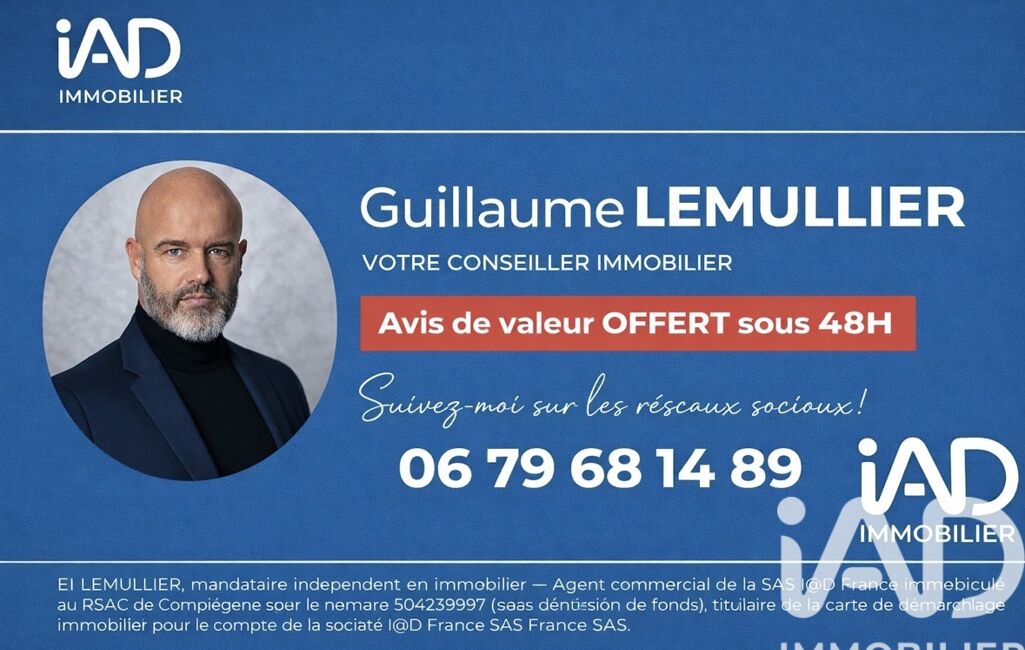 La présente annonce immobilière a été rédigée sous la responsabilité éditoriale de M Guillaume Lemullier mandataire indépendant en immobilier (sans détention de fonds), agent commercial de la SAS I@D France immatriculé au RSAC de Compiègne sous le numéro 504239997, titulaire de la carte de démarchage immobilier pour le compte de la société I@D France SAS.