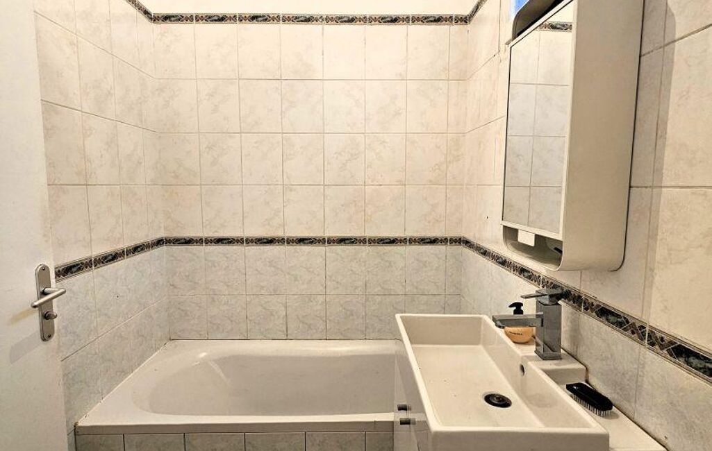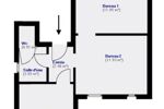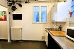 - une salle de bain et des WC (fenêtres), une cuisine de 8 m² environ aménagée et de placards de rangement intégrés ,