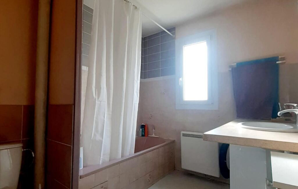 Côté nuit, quatre chambres et une salle de bain avec WC à rafraîchir.