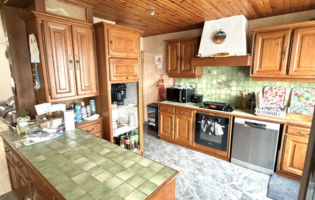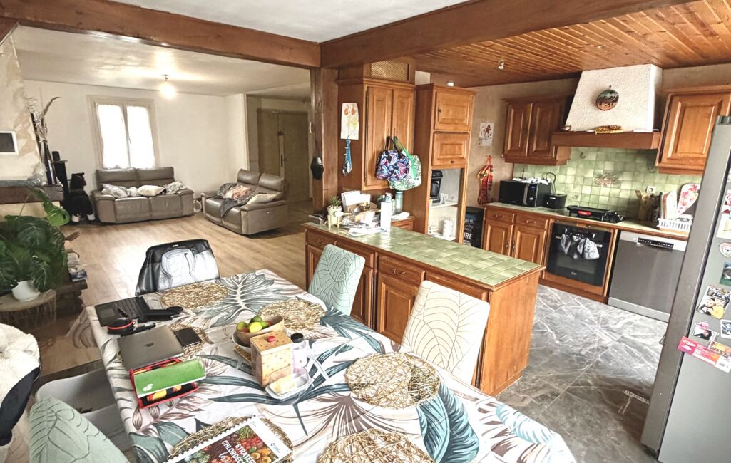 La maison se compose d’un grand séjour lumineux avec cuisine ouverte et aménagée, ouvrant sur une spacieuse terrasse d’été, idéale pour profiter des beaux jours.