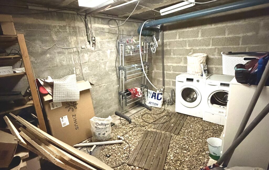 Le sous-sol total, d’une superficie équivalente à celle de la maison (environ 100 m²), entierement aménageable. Il comprend déjà une très grande chambre de 20 m², une pièce buanderie, et offre encore de nombreuses possibilités : espace de vie supplémentaire, salle de jeux, bureau, atelier ou logement indépendant.