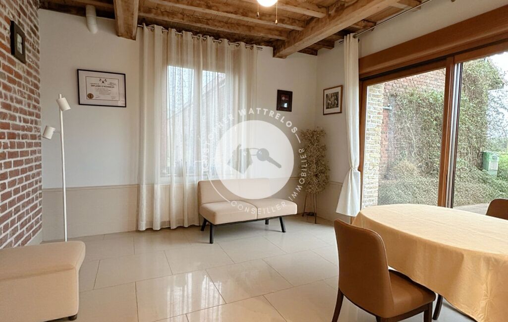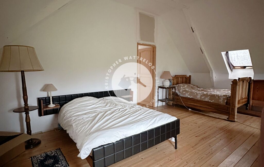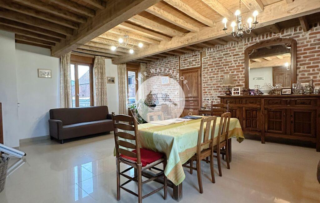 Ancienne ferme pleine de charme, elle séduit dès l’entrée par ses poutres apparentes, briques d’origine, et son atmosphère chaleureuse. Un bien rare, idéal pour une grande famille, un projet professionnel ou des amoureux d’espace et de nature.