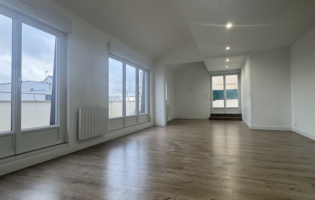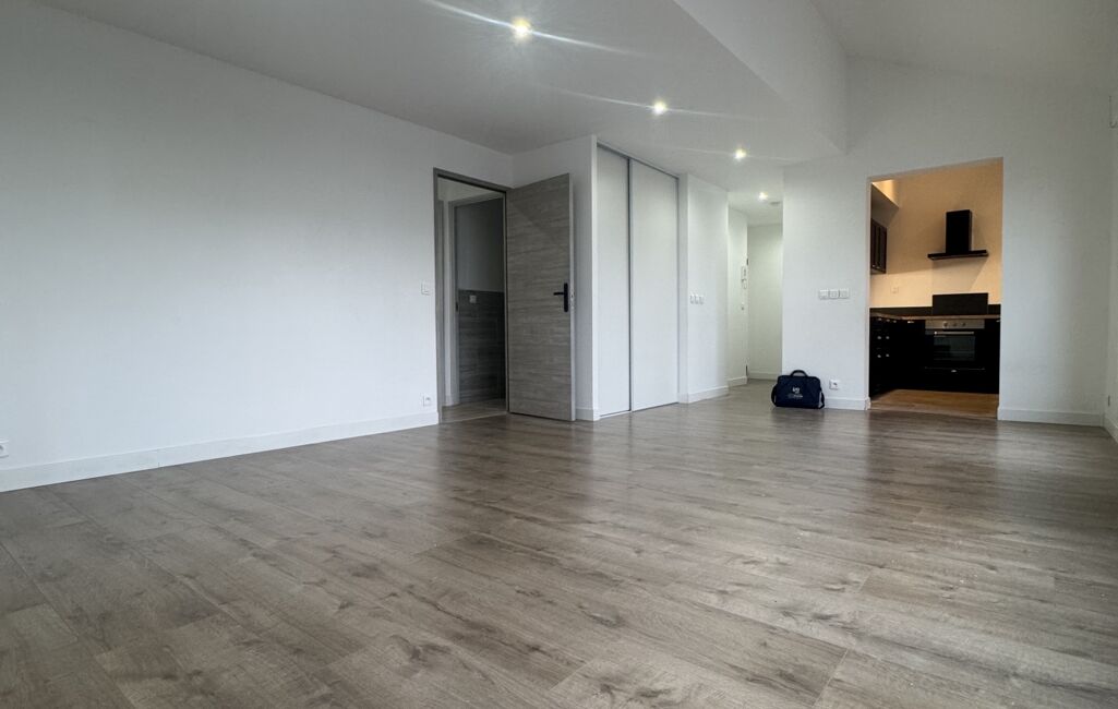 - L'appartement se compose, d'une entrée avec rangement, d'un double séjour lumineux (40m2), d'une cuisine aménagée et semi-équipée (7m2)