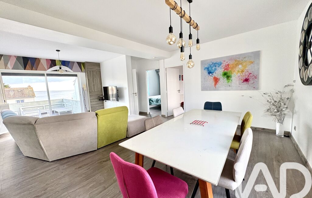iad France - Nicolas Guilleau vous propose: L’appartement vue mer se trouve à moins de 400 mètres des commodités du bourg et 50m de la plage. Il fait environ 77m2 au premier étage, sans ascenseur, dans une copropriété de deux appartements. Exposé plein sud, il dispose d’un salon lumineux avec terrasse, de deux chambres, d’une cuisine semi-ouverte, d’une salle d’eau et d’un WC indépendant. En plus, vous bénéficiez d’une place de parking, d’un rangement, de volets électriques récents et d’un portail automatisé installé il y a 3 ans