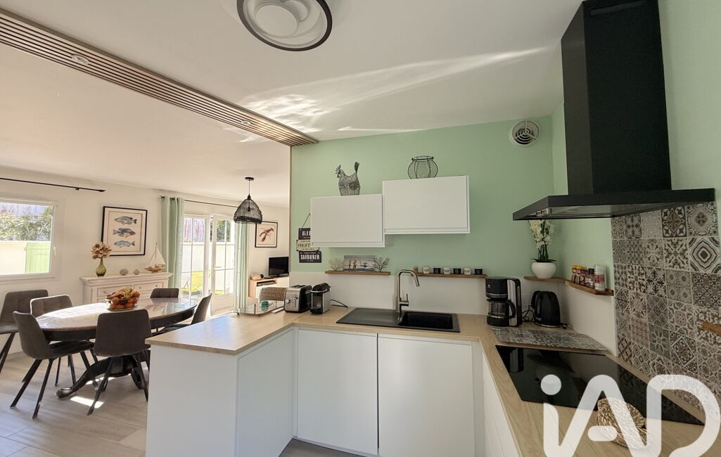 La maison s’ouvre sur une pièce de vie lumineuse tournée vers l’extérieur, avec une cuisine récente, entièrement aménagée et équipée. Un espace convivial, pensé pour partager, simplement.
