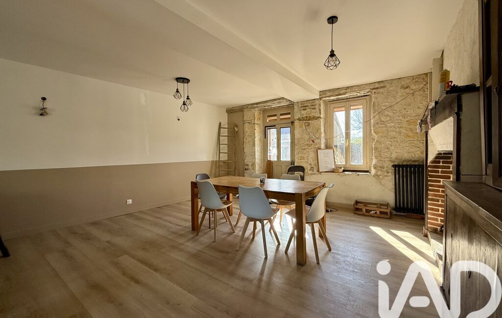 Un séjour double (salon / salle à manger) de 54 m², entièrement rénové, avec poêle à bois pour une ambiance chaleureuse