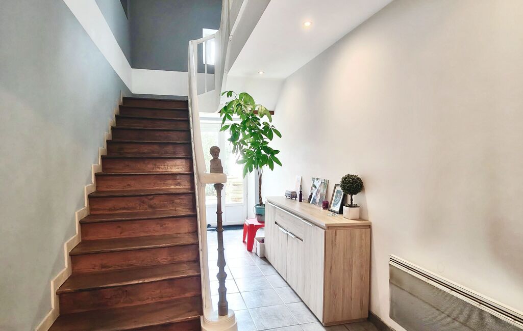 Maison de ville mitoyenne des deux côtés, entièrement rénovée par les anciens propriétaires. Trois chambres, grand séjour traversant donnant sur une belle terrasse en bois et sa vue dégagée, cuisine équipée, wc, salle d'eau agréable, jardin et garage.