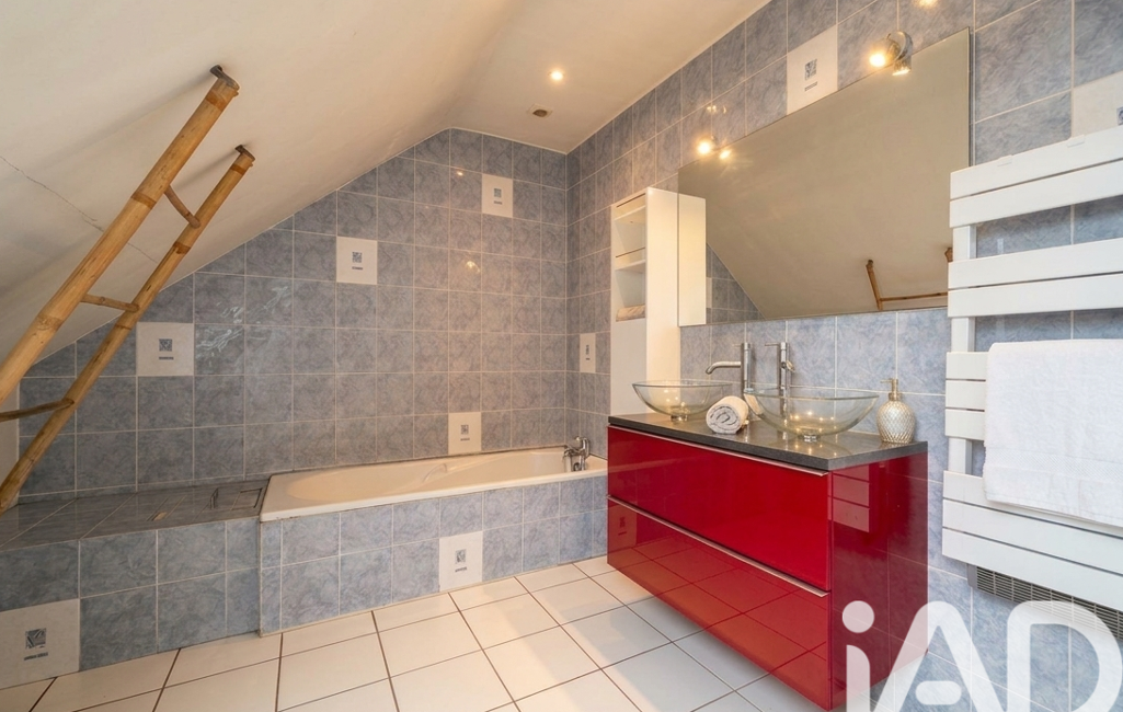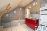 À l’étage, le palier distribue trois chambres, dont deux avec rangements, une salle de bain et un WC indépendant.