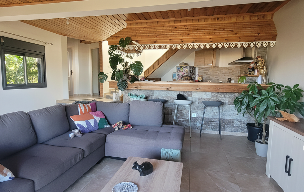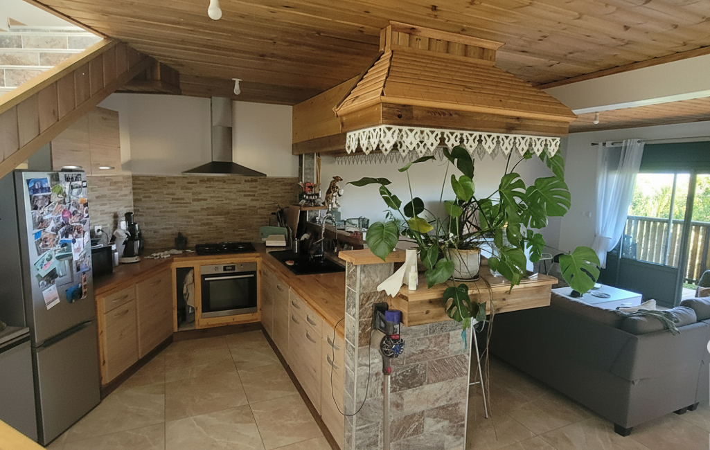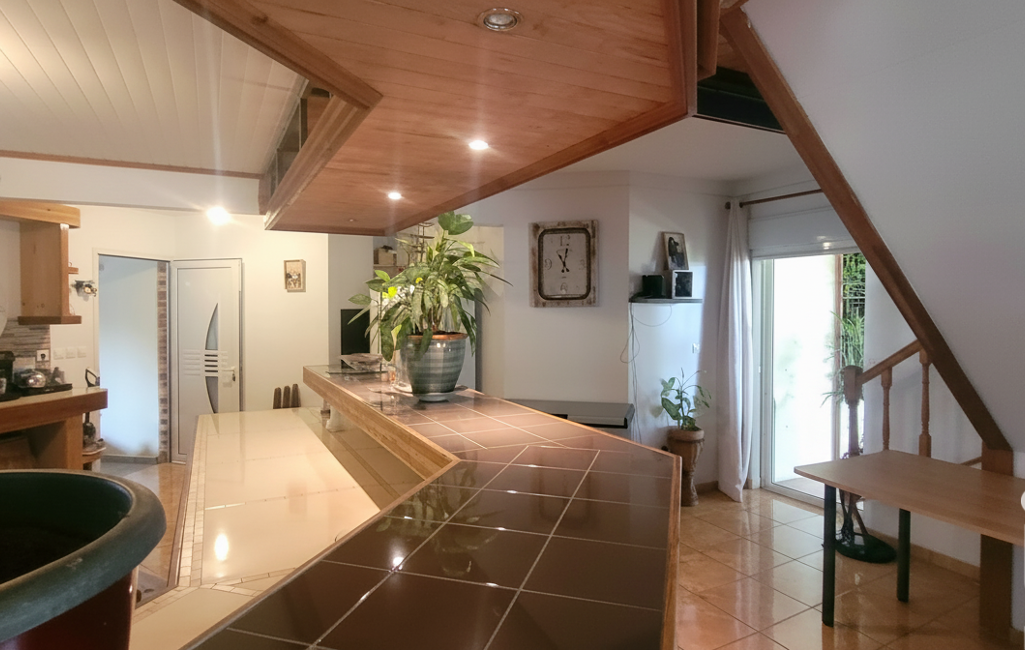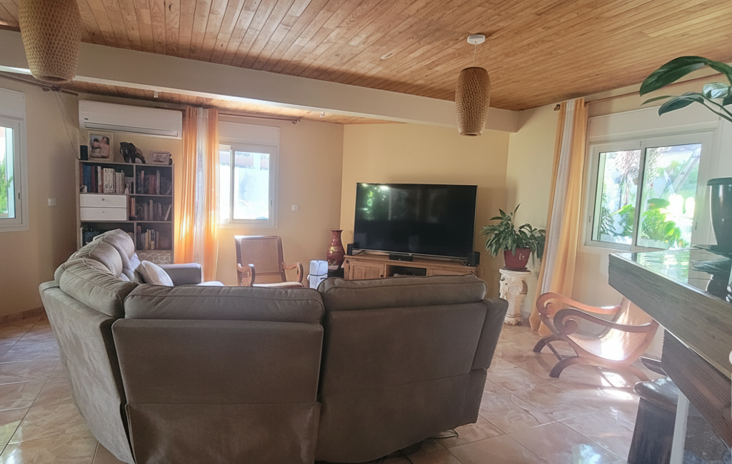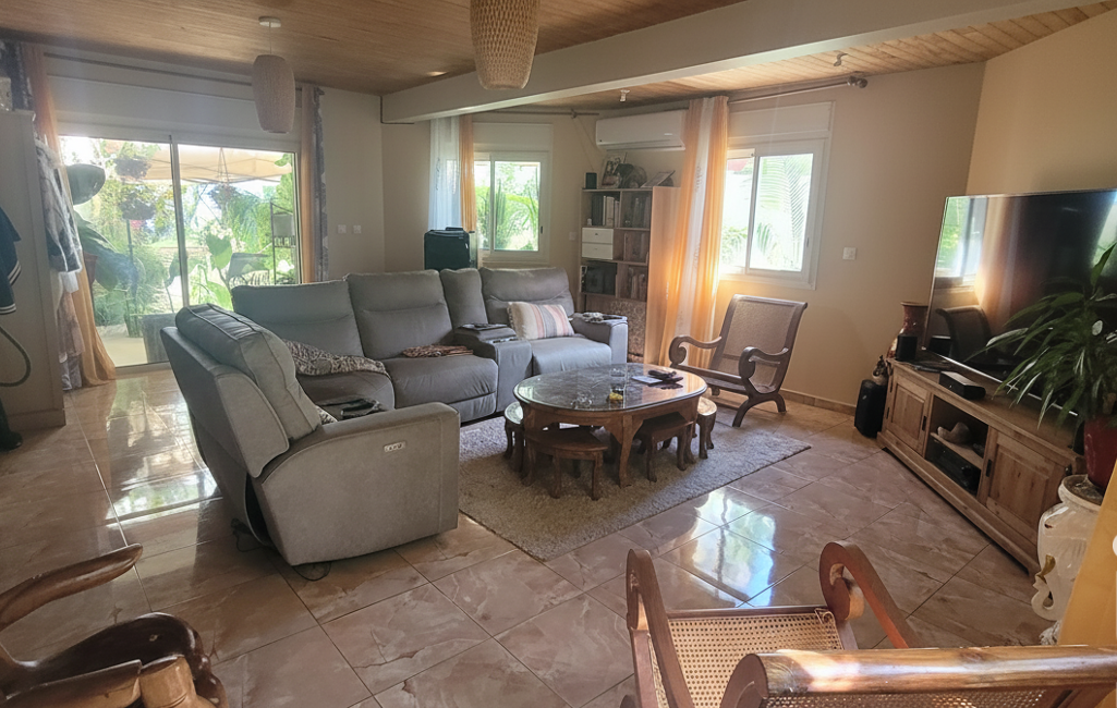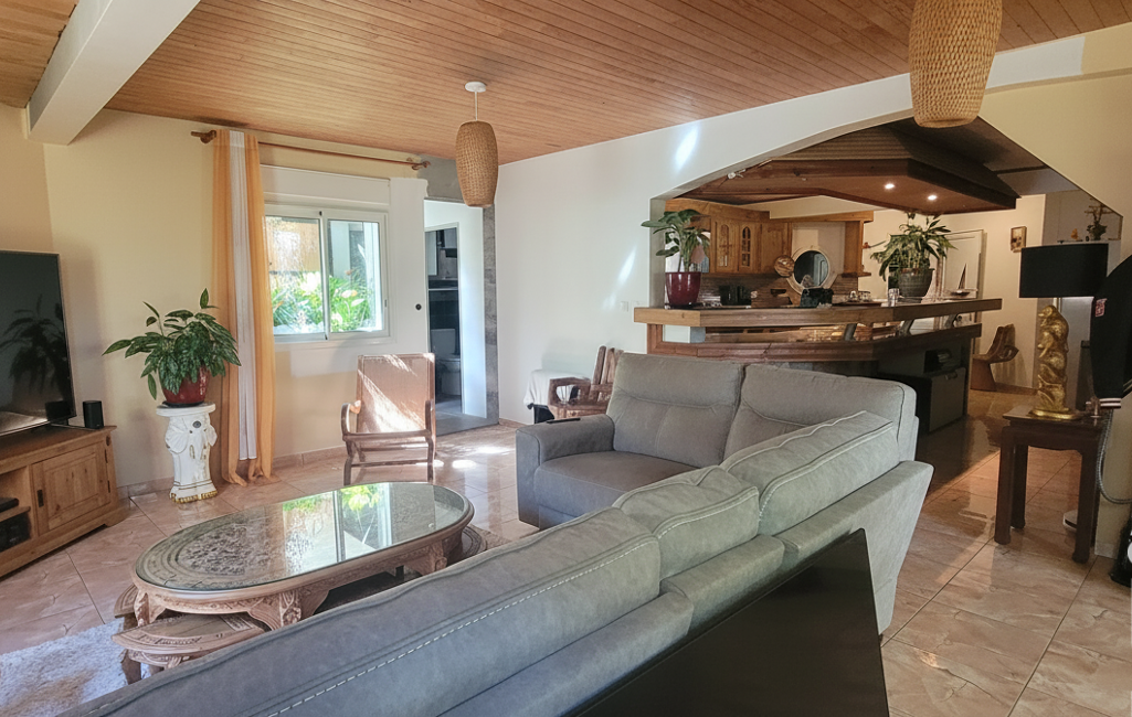 Intérieur : immense espace de vie, salon, salle à manger, cuisine, salle de bain, offrant de superbes volumes, 2 grandes terrasses de réception, une cuisine d'été créole aménagée.