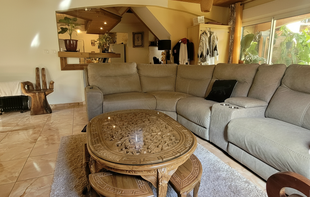 Au rez-de-chaussée, salon, salle à manger, chaleureux.