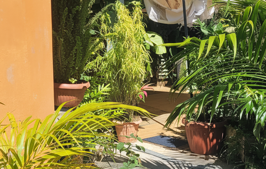 Vous serez subjugué par l'aménagement tropical du jardin, bassin à poissons, murs végétaux.