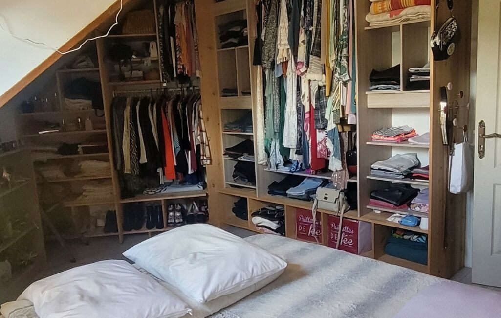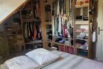 À l'étage, une grande chambre, une mezzanine aménagée servant de 2e chambre, un WC.