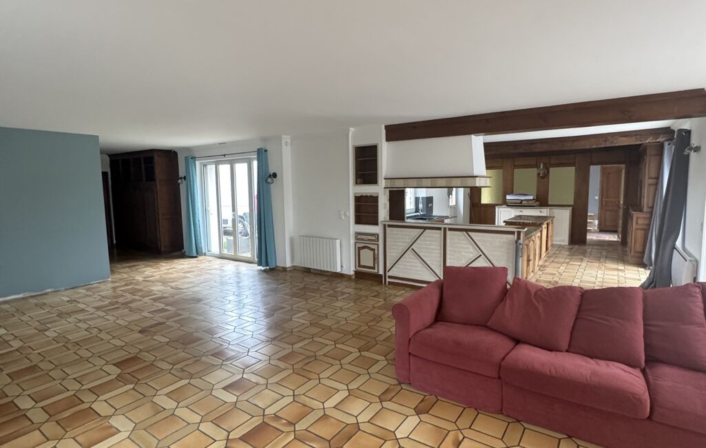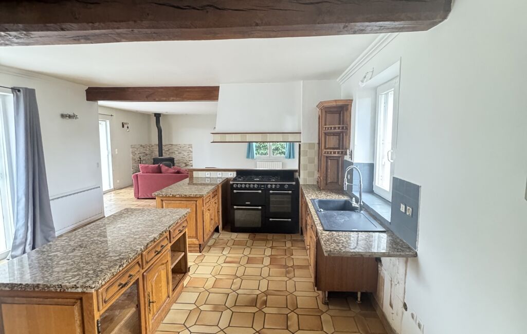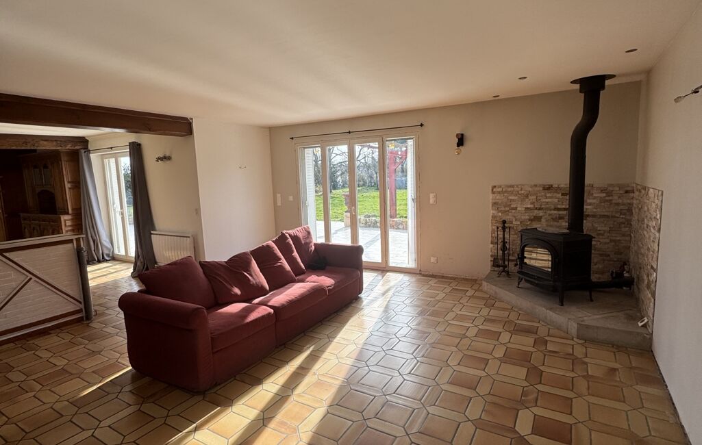 - Dès l’entrée, laissez-vous séduire par la spacieuse pièce de vie de plus de 80 m², baignée de lumière, où la cuisine ouverte, aménagée et équipée s’intègre harmonieusement au salon/séjour chaleureux, agrémenté d’un poêle à bois.