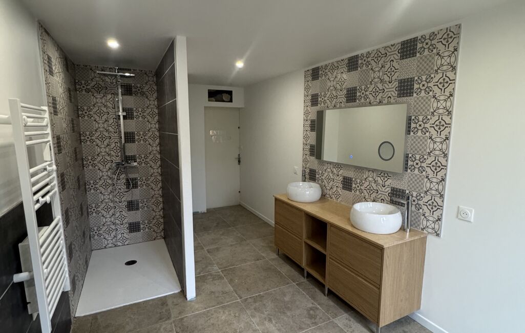 - Une salle d’eau avec double vasque et WC indépendant.