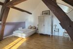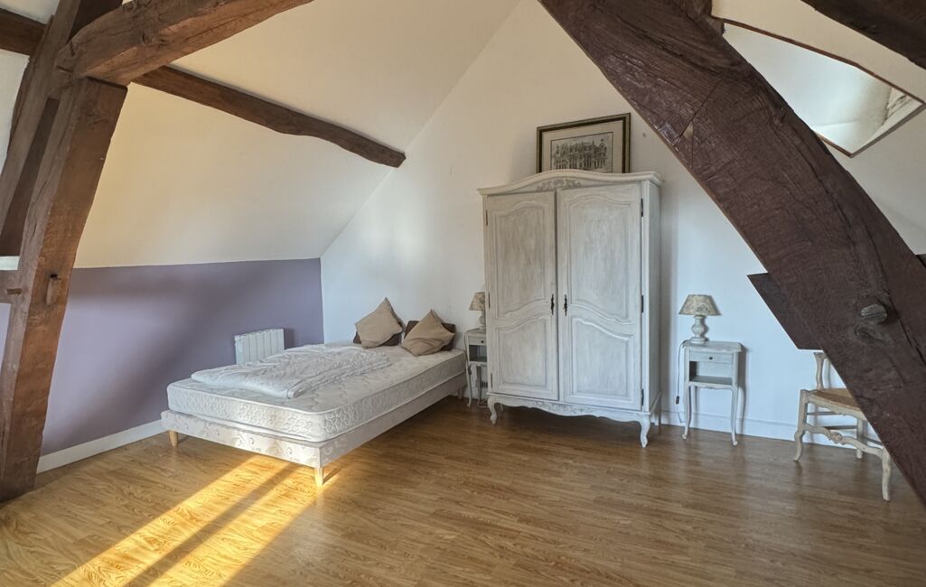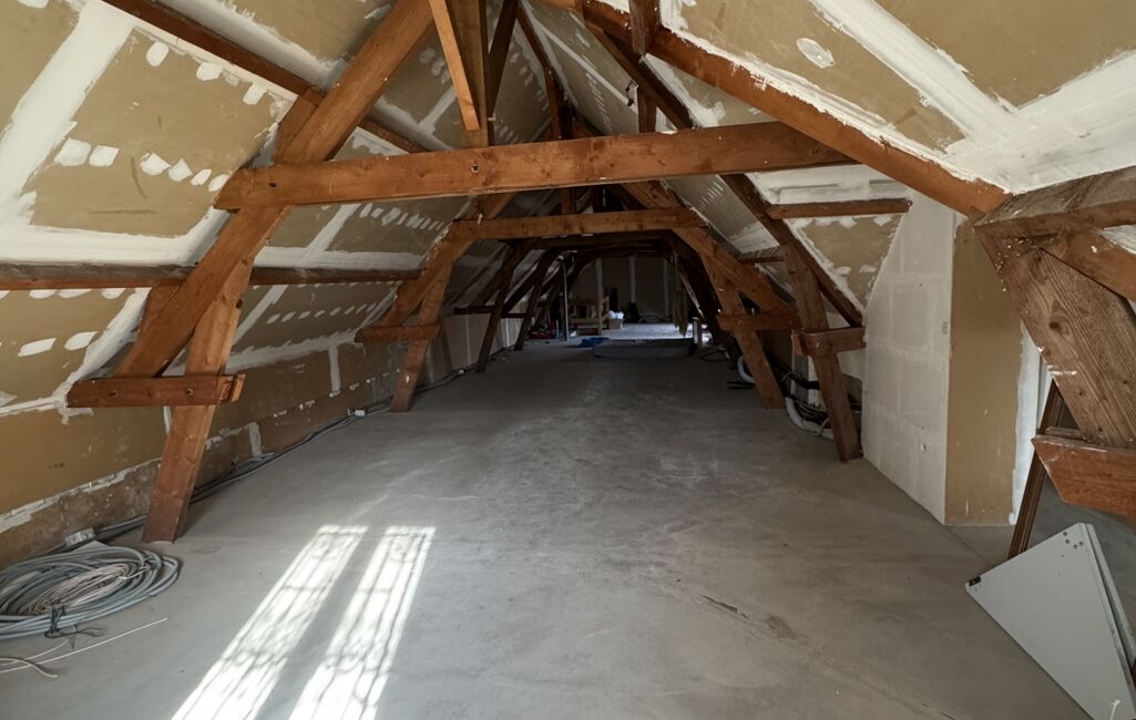 Combles d’environ 95 m², déjà isolés et plaqués, avec magnifiques poutres apparentes, offrant un potentiel exceptionnel pour chambres supplémentaires, espace de loisirs ou bureau.