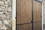 Menuiseries aluminium double vitrage et volets en bois.