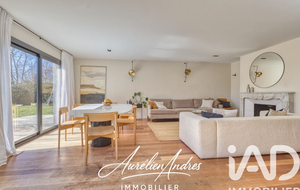 Le séjour d’environ 40 m², lumineux et chaleureux, constitue le cOEur de la maison. Il est mis en valeur par un parquet en bois massif, une cheminée en marbre et de larges ouvertures sur le jardin, apportant beaucoup de caractère à l’ensemble.