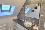 Le rez-de-chaussée se compose d’une entrée accueillante, d’une cuisine équipée et aménagée, ainsi que d’un spacieux salon / séjour d’environ 30 m², lumineux et convivial. Vous y trouverez également un bureau, idéal pour le télétravail, ainsi qu’une belle suite parentale comprenant un dressing, une salle de bain et un WC.