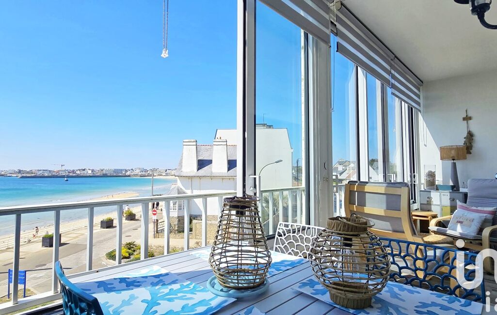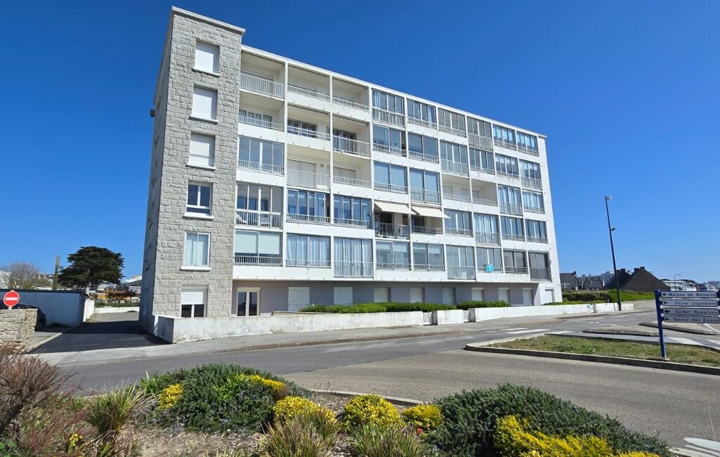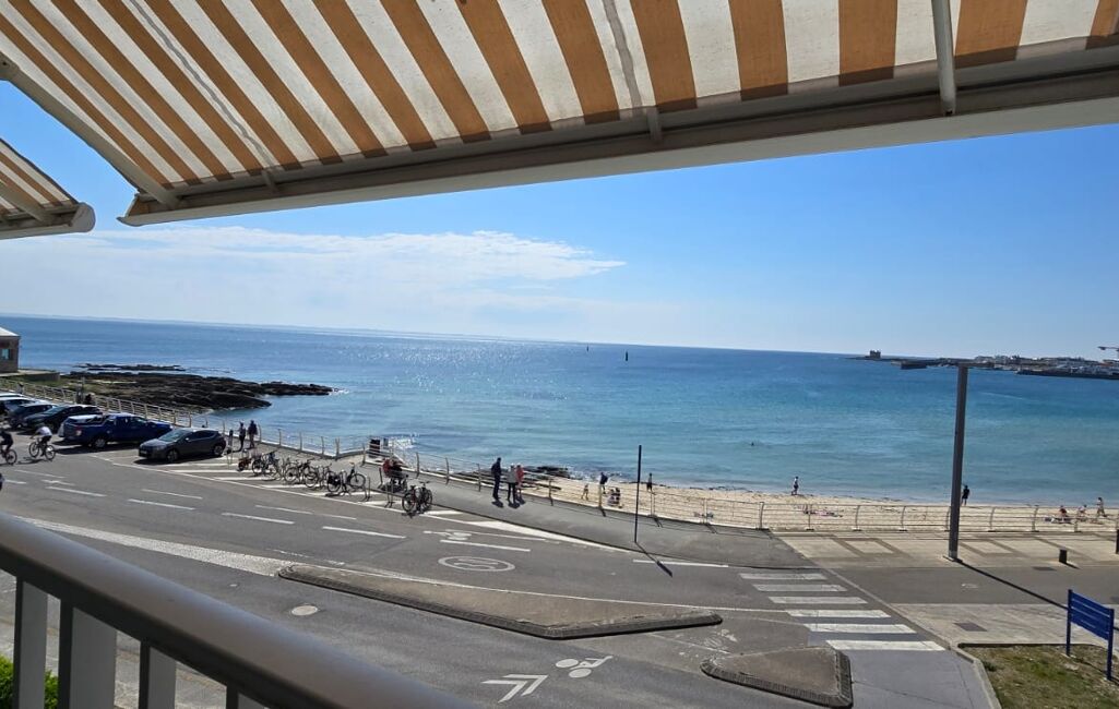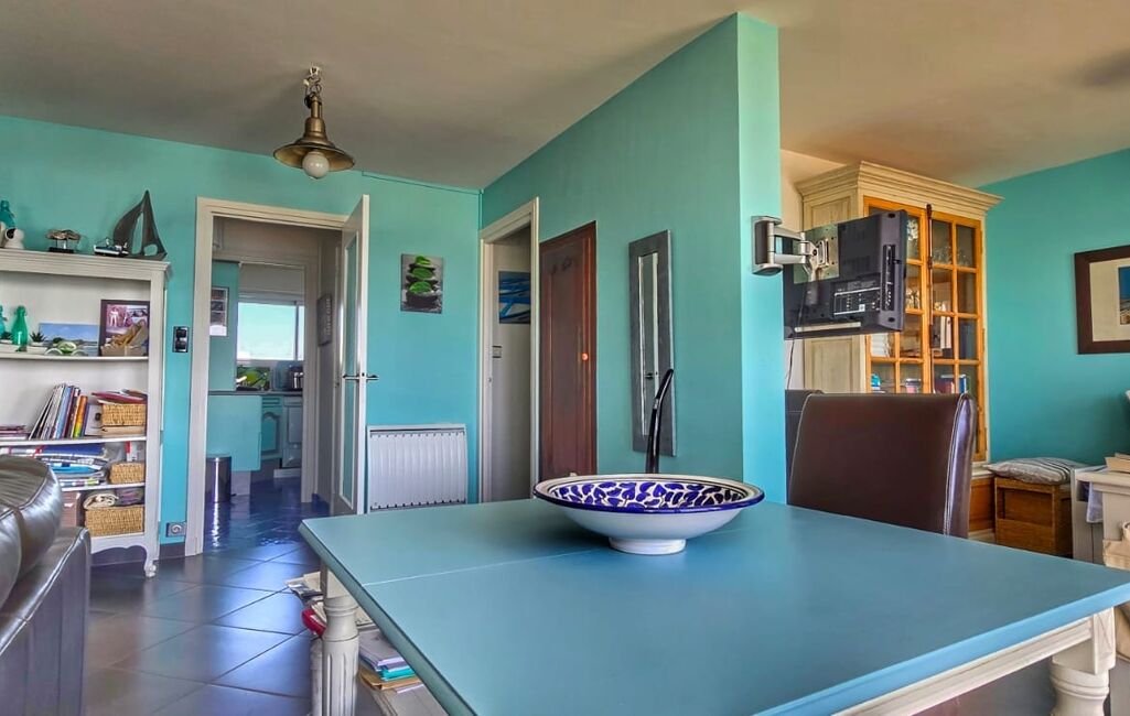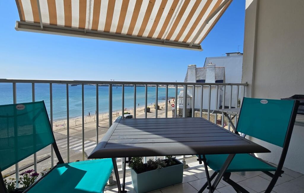 Il s’agit de l’un des seuls appartements de la résidence à offrir une telle pièce de vie avec un panorama direct sur la Grande Plage de Quiberon.