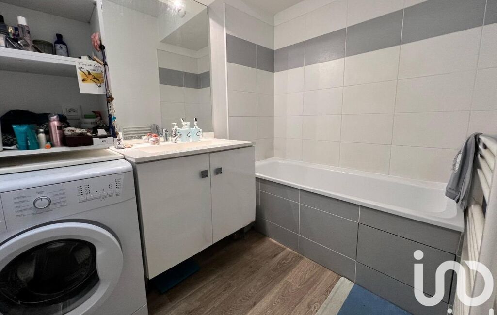 Salle de bain avec baignoire et emplacement lave-linge