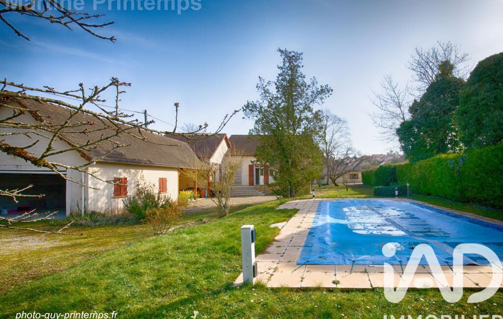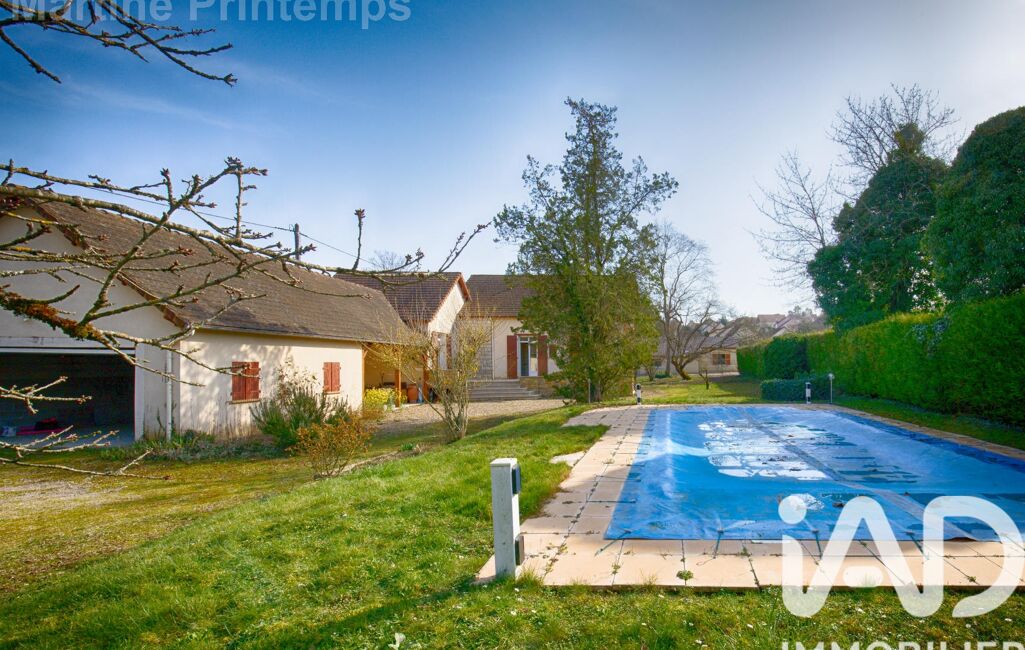 iad France - Martine Printemps vous propose: Pour un projet familial ou résidence secondaire, laissez-vous séduire par l'âme de cette propriété ancienne, ilot de verdure en plein coeur de Pont sur Yonne. Une terrasse avec vue sur le parc et la piscine chauffée, vous mène au séjour en L avec cheminée, à la cuisine fermée, l'entrée, des toilettes avec lave-mains, puis à une vaste suite parentale.