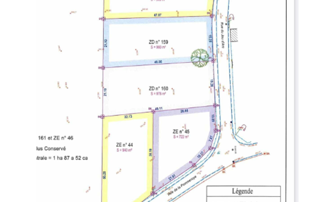 Parcelles : ZE0044 ( 940 m2) et ZD0160 ( 978 m2) soit un total de 2640 m2 pour y installer le projet de vos rêves !