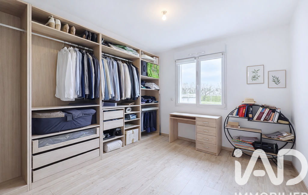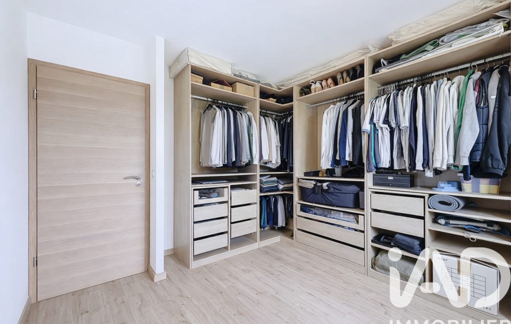 Une chambre avec dressing aménagé.