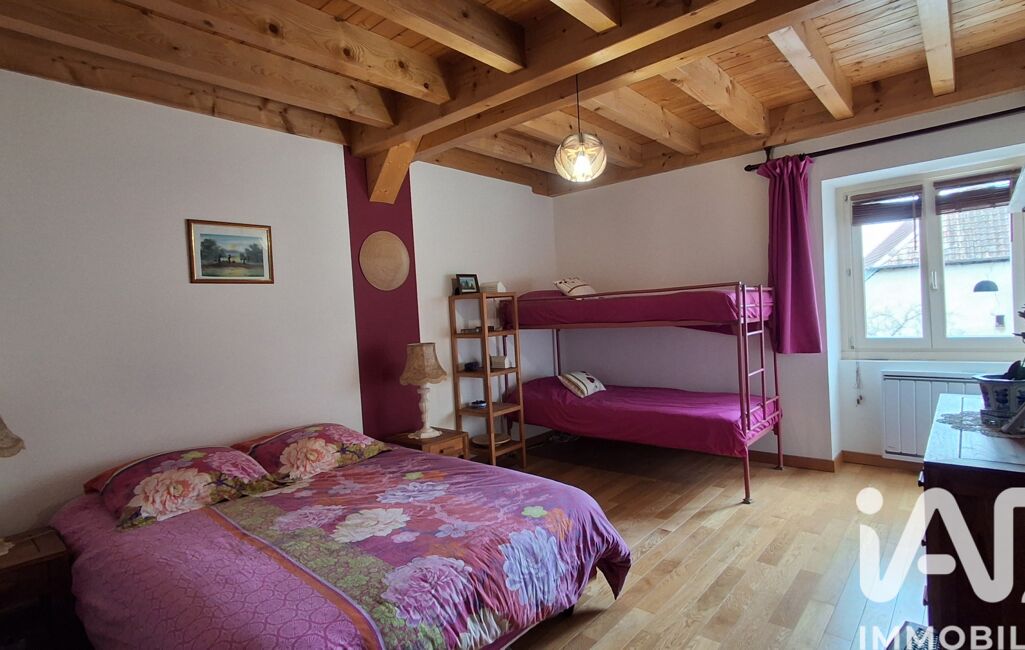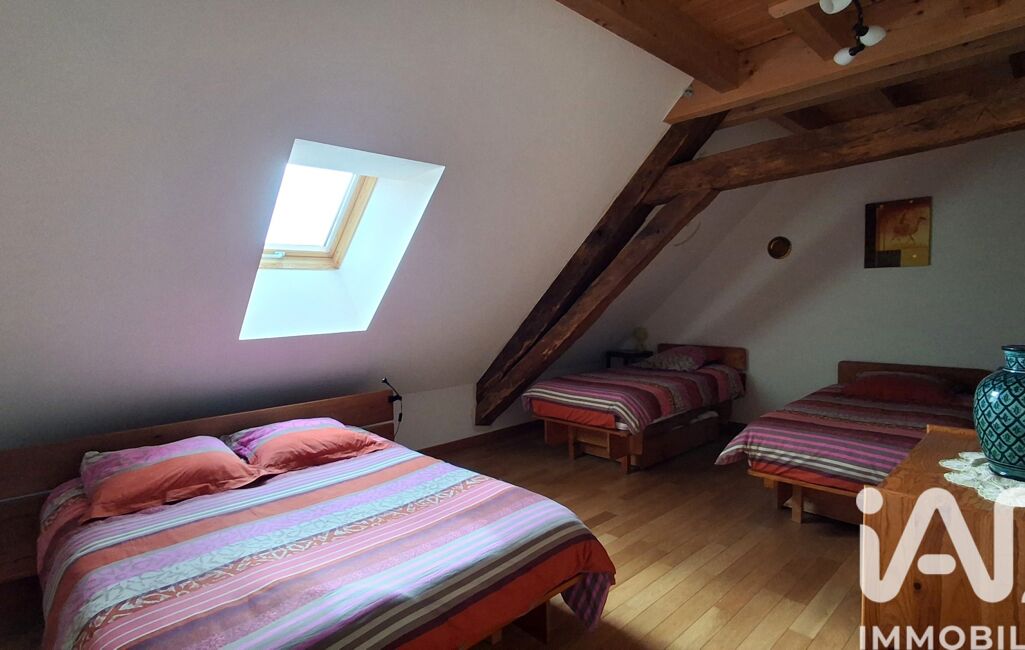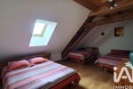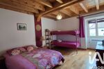 L'étage supérieur offre un espace confortable utilisé comme bureau agrémenté d'un poêle à granulés, 2 spacieuses chambres, salle d'eau, wc et grenier.
