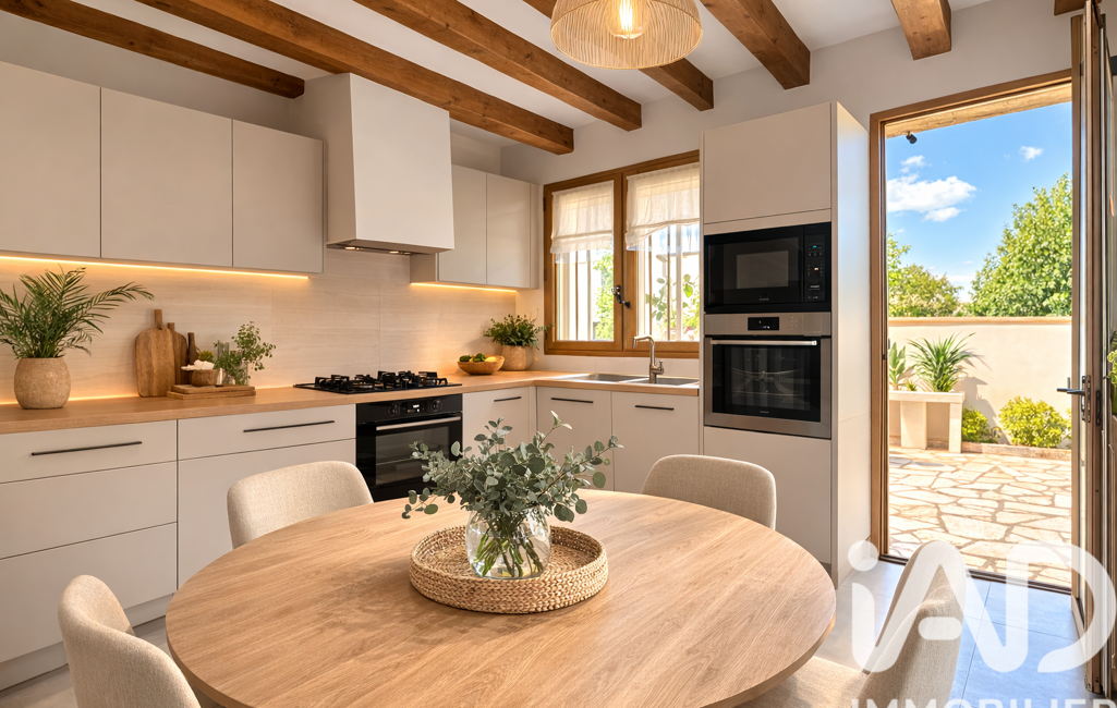 •Cuisine ouverte donnant directement sur une terrasse ensoleillée