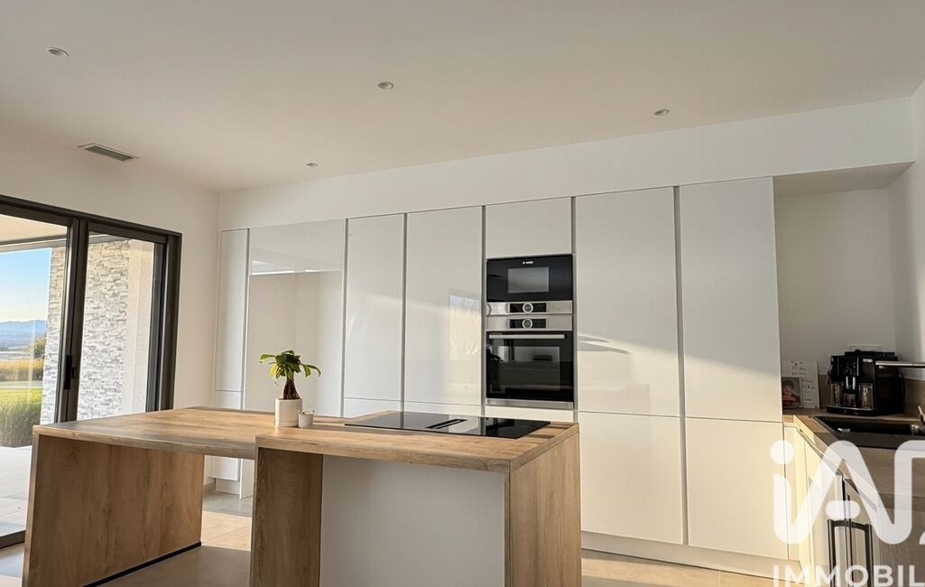 La pièce de vie d’environ 65 m² offre un espace spectaculaire, baigné de lumière grâce aux grandes baies vitrées à galandage. La cuisine ouverte s’intègre parfaitement dans cet ensemble convivial, tandis que le cellier, avec accès direct au garage, apporte un vrai confort au quotidien.