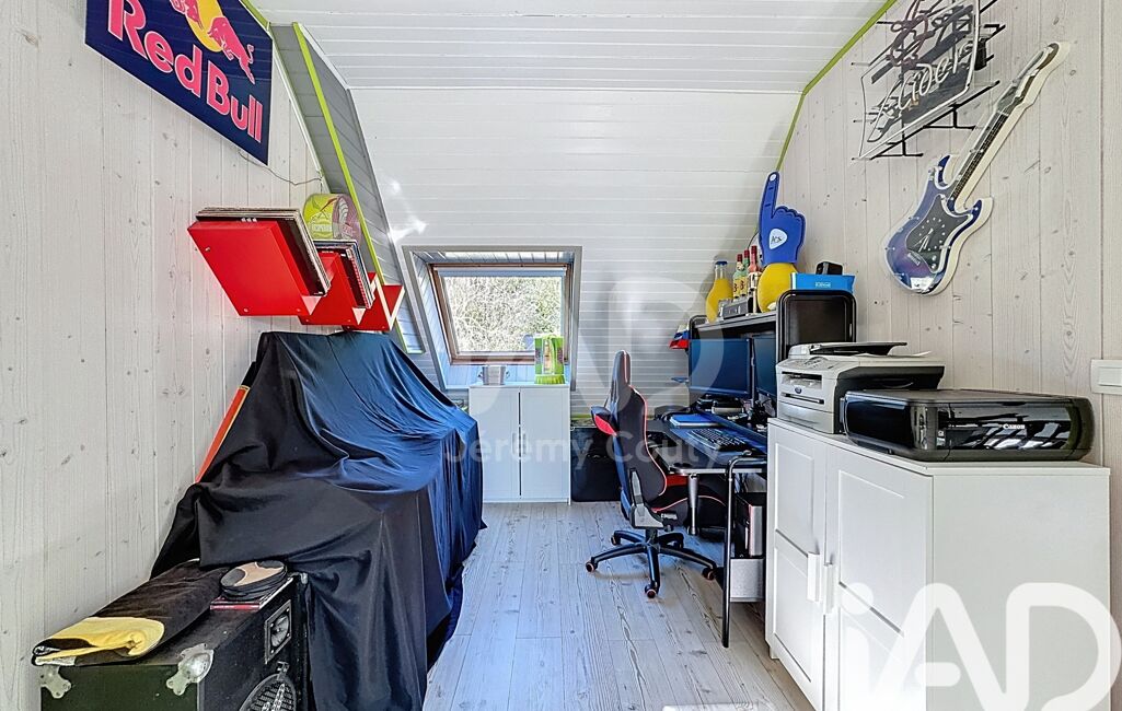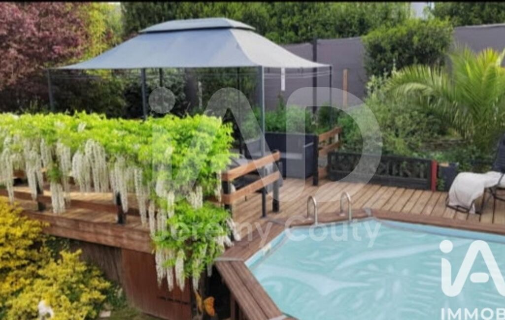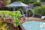 Une terrasse bois accompagnent une piscine hors-sol bois d’environ 20 m². Le jardin arboré, sans vis-à-vis, offre un cadre intimiste et verdoyant. Une terrasse côté Sud avec une pergola bois est également présente.