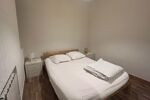La chambre de 9,60 m² est équipée d'un lit double et d'une penderie pour un rangement optimal.