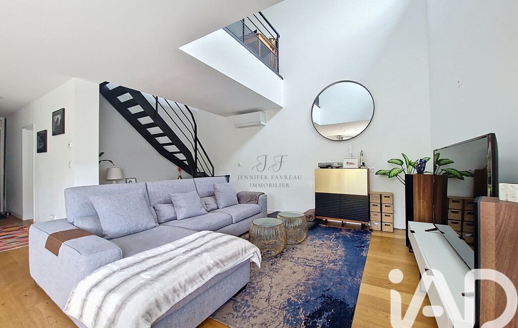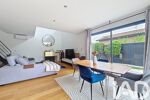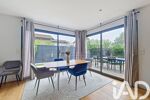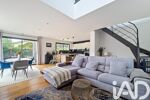 Une entrée, une belle pièce de vie de 50 m² baignée de lumière grâce à ses grandes baies vitrées, offrant une ouverture directe sur le jardin.
