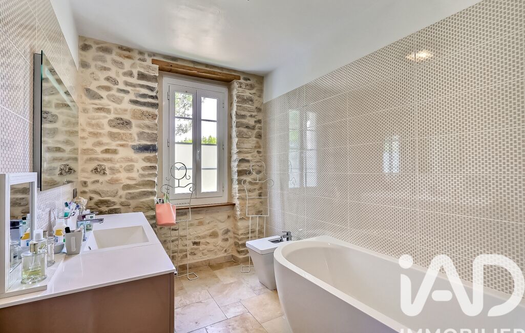 Au rez-de-chaussée, au bord d’une piscine carrelée, une cuisine d’été et un salon en pierres naturelles invitent à la convivialité. La maison bénéficie de trois accès indépendants, permettant une circulation fluide entre les niveaux, tout en offrant la possibilité d’aménager des espaces de vie distincts pour recevoir ou créer des suites indépendantes.