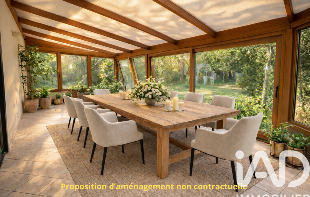Le rez-de-chaussée se compose d'une belle entrée desservant un séjour lumineux, prolongé par une véranda de 30 m2, exposée ouest ouvrant sur le jardin.