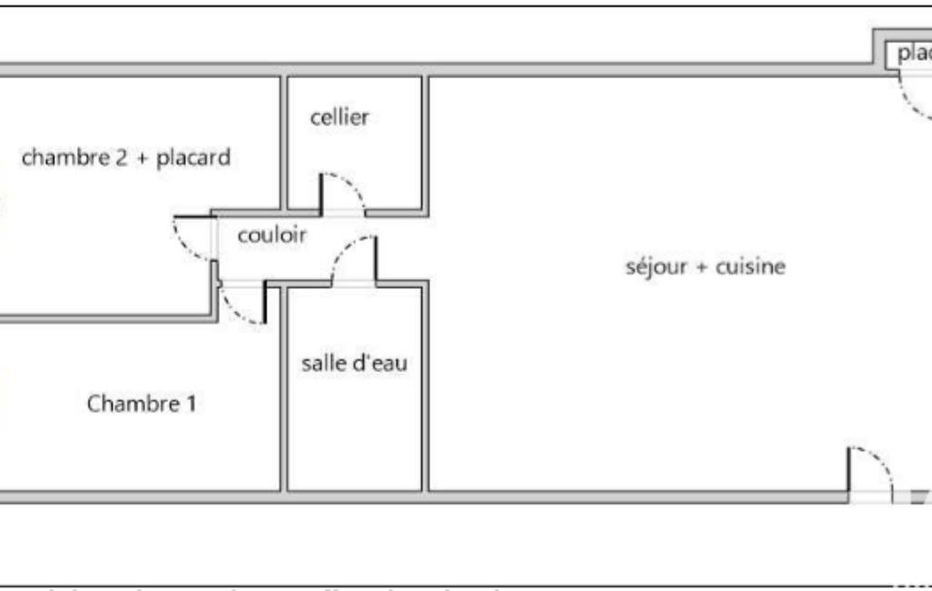 Il vous propose 1 agréable pièce de vie avec espace cuisine ouverte, 2 chambres dont 1 avec placard, 1 cellier aménagé, 1 salle d'eau avec WC, et 1 WC séparé.