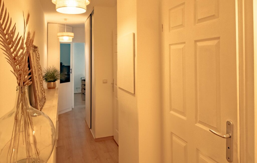 - Une entrée avec couloir, équipé d’un placard, permettant de séparer la partie nuit de la pièce de vie pour plus de calme et d’intimité.