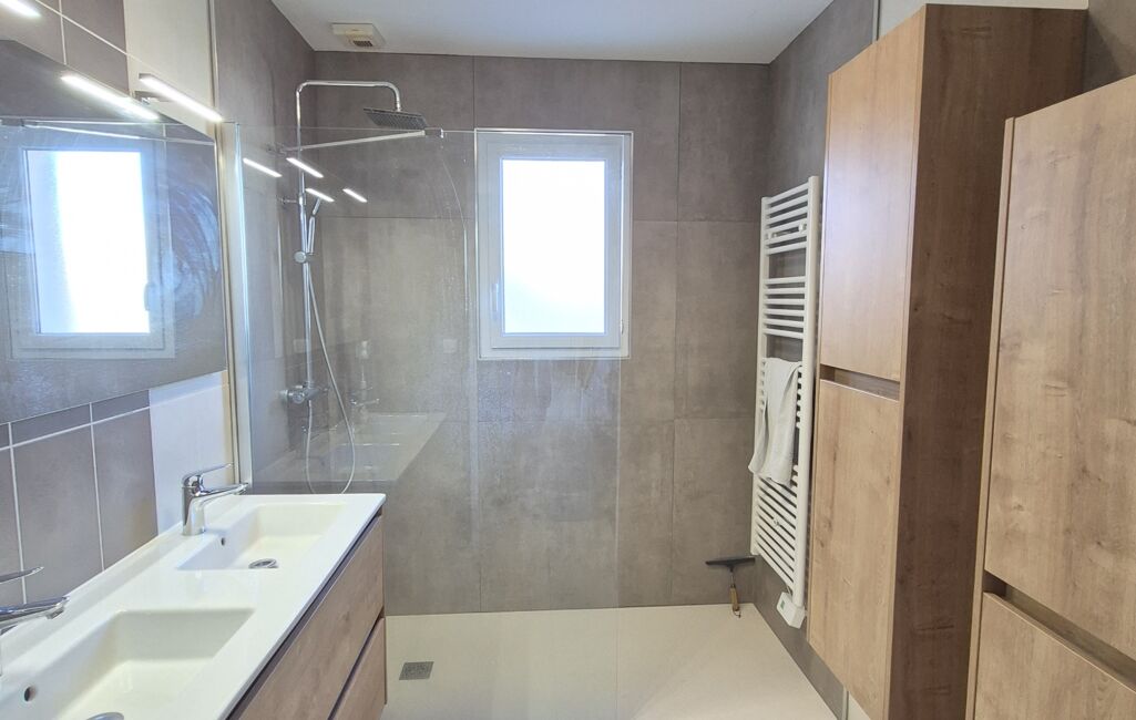 Une salle d'eau rénovée en 2022 et un WC séparé.