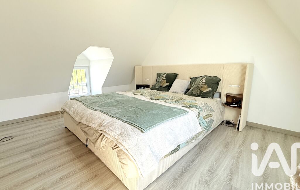 À l’étage, l’espace nuit se compose de trois chambres mansardées, parfaites pour accueillir une famille, ainsi qu’une seconde salle de douche avec WC.