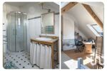 Les combles aménagées offrent un atout supplémentaire : un vaste bureau idéal pour le télétravail, ainsi qu’un espace nuit comprenant une chambre et une salle de douche avec WC.