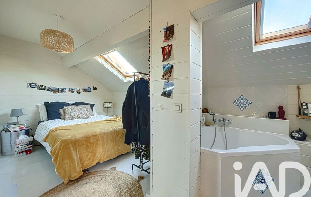 À l’étage, l’espace nuit offre une atmosphère douce et intimiste :