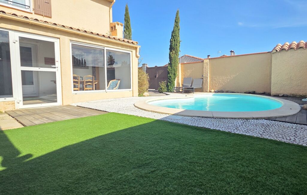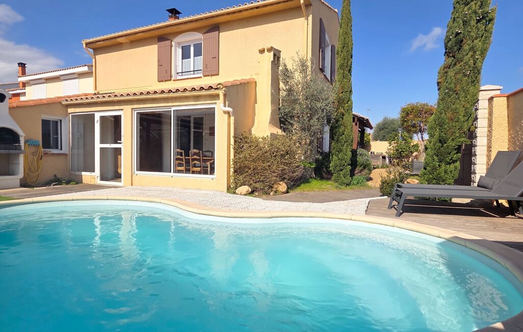 Magnifique Villa familiale rénovée en R+1 T5 de 95m2 habitable sur une parcelle de 308m2 en 3 faces sans garage salle de musique à la place, véranda de 15m2 et atelier de 5,50m2 coin buanderie, sans vis à vis, proche du centre, climatisation réversible, piscine plein sud.