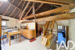 Au rez-de-chaussée, vous découvrirez une belle pièce de vie de 53 m² avec poutres apparentes, offrant une atmosphère chaleureuse et pleine de caractère. La cuisine semi-ouverte, attenante, donne un accès direct à un préau, idéal pour les repas en extérieur et les moments de convivialité.