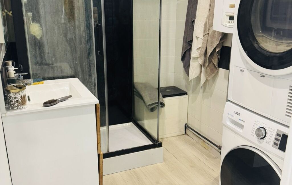 Au rez de chaussé, la cuisine est ouverte sur la salle à manger. Vous y trouverez également la salle de bain, un wc séparé et un salon cosy et lumineux donnant accès à votre cour privée d'environ 25m2.