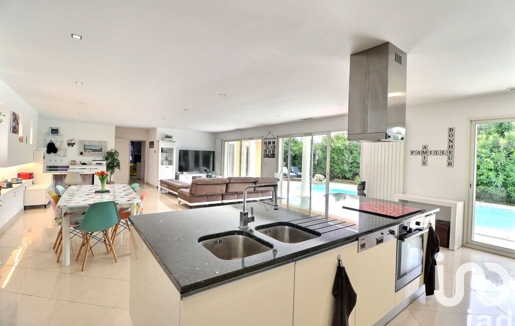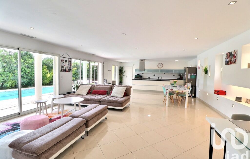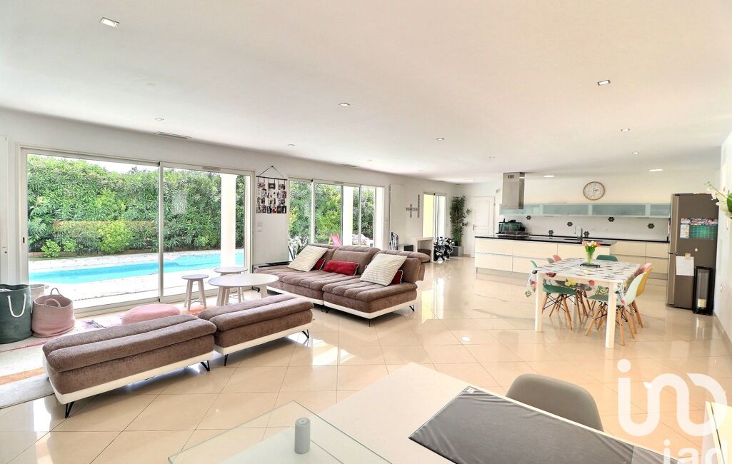 La maison, se compose d'un superbe séjour de 70m² baigné de lumière. La cuisine est équipée. Les baies vitrées donnent sur une elle et grande piscine chauffée.